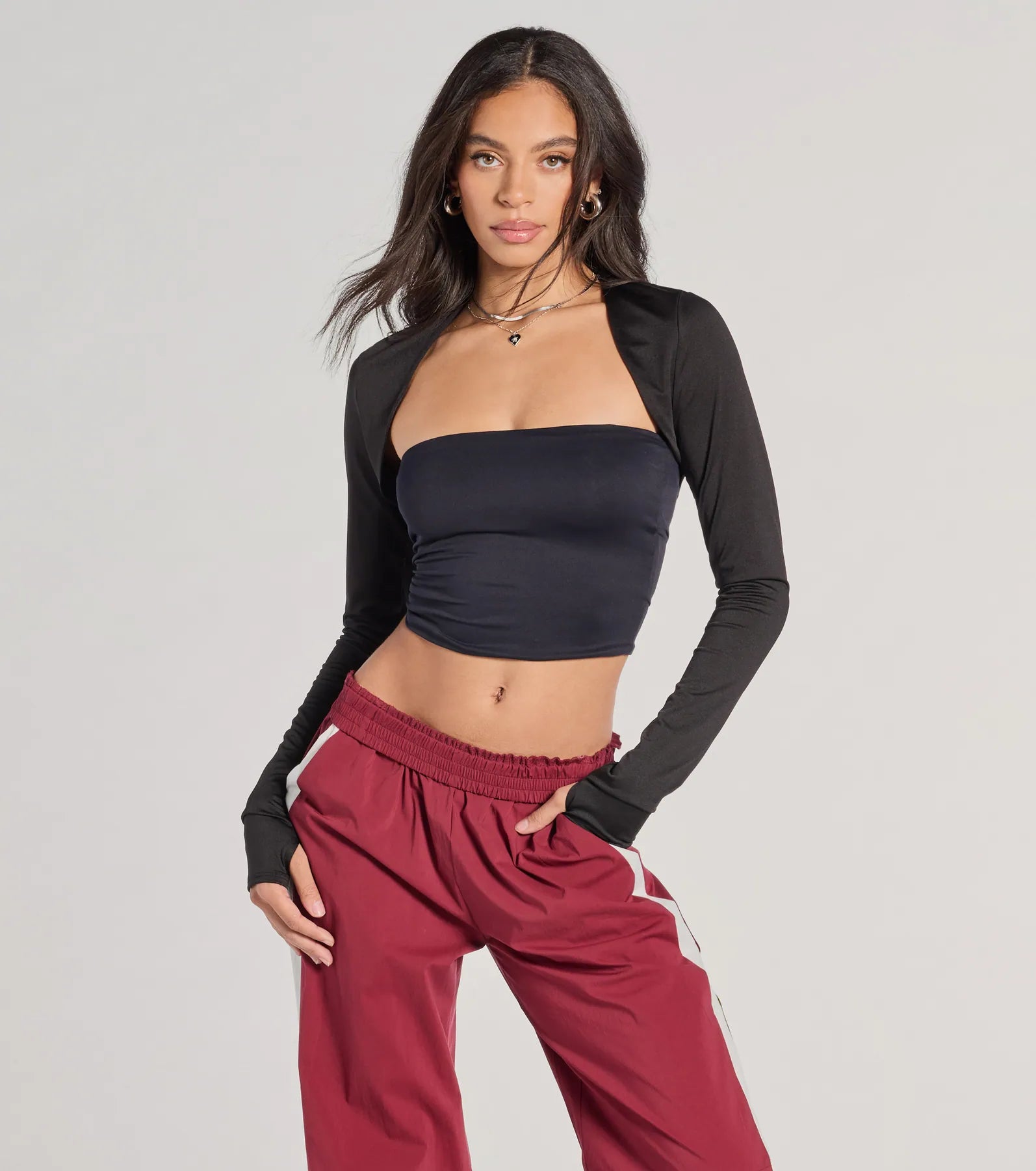 Get ready to slay in the style so sleek long sleeve knit bolero. With its ultra-cropped hem and open front. this stretchy knit piece is your go-to for effortless chic vibes.
