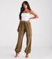 Adventure in style around town in these twill cargo joggers perfect for giving your closet a streetwear vibe! They feature a high-rise elasticized drawstring waist. side pockets. a loose-fit leg silhouette. and lower-side flap pockets. elasticized hem. and are crafted from a woven on-stretch fabric with a cool washed effect. Complete the look with a basic tank top and sneakers.