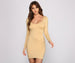 You'll be a total stylish babe in this chic mini dress! It features a wide scoop neckline. long fitted sleeves. and a curve-hugging. mini length silhouette. The dress is composed of a brushed knit fabric with plenty of stretch for comfortable wear. Pair this dress with thigh-high boots to elevate it to a night out look!