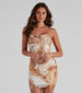Radiate major stylish energy in this marble print mini dress featuring a sleek. sleeveless square neck with bungee spaghetti straps. a bodycon silhouette. and a sheer mesh overlay with lining. Complete the look braid strap mules.