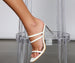Hey babe. have a chic and stylish moment in these clear heel mules! They feature an open almond-shaped toe. a thin strappy design. and a lucite block heel. Pair these mules with a cute blouse and mom jeans to elevate the look.