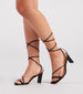 Make only stylish moves in these chic strappy block heels! They feature an open square toe with two toe straps. an asymmetric strap across the foot. a strappy lace-up design that wraps around the leg. and a thin block heel. Complete the look with a mini handbag.