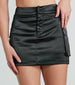 The perfect stylish satin mini skirt for any occasion! Crafted on silky stretch satin. this skirt features a flattering high-rise waist. a form-hugging fit. dual side flap pockets. and a mini-length hem. Complete the look with a sleek moto jacket and boots!
