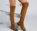 You can never go wrong with this over-the-knee boot perfect for day-to-night! It features an almond toe. flat sole. faux suede material. and a pull-on/off styling. Complete the look with a mini skirt and sweater.