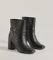 Show off a stylish stride in these sleek faux leather booties with a cross front and back buckle strappy design. They feature an above-the-ankle height. a square toe. an inner zipper closure. and a sturdy block heel.