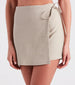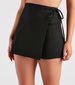 Create a stylishly elevated everyday look with this chic woven skort. It features a high-rise waist. a wrap-front design with a short skirt overlay and a side tie detail. fitted shorts. and an all-over textured striped pattern. The woven fabric offers a moderate stretch. Complete the look with a basic crop top and clear mules.