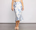 Stylish and oh-so sleek. this satin midi skirt will be that new trendy piece you need in your closet! Featuring a flowy mid-length silhouette and an all-over tie-dye print. this skirt is perfect for a brunch date. Pair with a fitted crop top and cute mules.