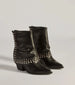 These faux leather booties feature an above-the-ankle fold-over design with a chic studded embellished trim. a pointed toe. a back zipper closure for effortless styling. and a stacked block heel. Pair with a mini dress and faux leather jacket!