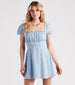 Create a charming look for weekend dates with this adorable floral skater dress! It features a square neckline with a ruffled hem. short puff sleeves. dual high waist seams. and a short skater skirt with a flattering fit and flare silhouette. The lightweight chiffon fabric features a ditsy floral print pattern for the cutest spring or summer vibe. Style with espadrille sandals.