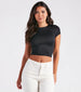 This cute smooth knit crop top will become a classic piece in your lineup! It features a crew neckline. short fitted sleeves. a fitted. cropped hem. and a soft and smooth double-lined knit fabric that offers plenty of stretch. Style with high-rise jeans and sneakers for the perfect casual vibe.