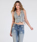 A trendy denim vest that'll get you in the going-out mood with cute lace-up sides and a crop hem that flaunts your figure!