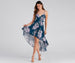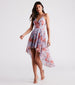 Sugar and spice and everything nice! Look so sweet in this floral chiffon dress featuring a sleeveless V-neck. spaghetti straps. and an open back with lace detail on a flowy. high-low hem. Complete the look in statement earrings for a dressy birthday event.