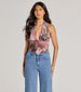 A sleeveless crop top features a sultry halter V-neckline a partially open back and a sheer bodice to flaunt some skin. Perfect for styling with jeans for casual plans.