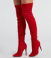 These sultry lace-up thigh-high boots deserve all the attention! They feature a pointed toe. a sleek stiletto heel. an inner zipper closure. a stunning lace-up back design. and a form-hugging fit. Style with a mini dress and a faux leather clutch.