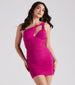 Level up your sultry status in this alluring mesh mini dress! It features a one-shoulder neckline with a tank strap with knotted details. a bold front cutout above the bust. a wired bust to provide structure. and a ruched corset-designed bodice with flexible boning. The high waist seam leads to a ruched skirt with a mini-length hem and a bodycon silhouette that will hug your curves. The lined mesh fabric offers a moderate stretch. Complete your night-out look with platform heels.