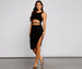 This ribbed knit midi dress is the perf option for a casual yet still sultry look! It features a sleeveless crew neckline. tank shoulder straps. a front waist cutout with a strappy design. and a mid-length. curve-hugging silhouette with a chic side slit. Style this dress with strappy heels.