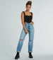 Show up your next night out looking like a sultry stunner in this lace-up corset top! Made with a lined woven fabric with moderate stretch. this top is shaped with a sleeveless square neckline. tank shoulder straps with a trendy lace-up grommet design. and flexible boning inserts for that structured silhouette. The back zipper closure offers a secure fit. and the angled cropped hem creates a chic snatched look. Style with high-rise jeans and combat boots.