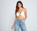 Showcase your sultry style with a halter top that brings those sexy details! The crop top features a halter neck. adjustable criss-cross straps. and cropped hem. The top is composed of a brushed knit fabric that offers a form hugging fit with a moderate stretch. Complete look with high waist jeans and mules.