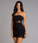 Flirty and unapologetically bold—this strapless mini dress turns heads with sheer lace at the waist. ruching that hugs every curve. and a ruffled lace hem for that perfect finishing touch. Equal parts daring and dreamy.