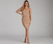 Bring luxe appeal with a one-shoulder bodycon that showcases sultry vibes! The dress features a one-shoulder neckline with a fitted long sleeve and an asymmetrical mini-length silhouette. The ruching detail throughout enhances your natural curves while offering a form-hugging fit. Composed of a glitter lurex-lined fabric with a moderate stretch. Style with mules and rhinestone earrings.