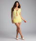 This airy sheer lace mini skort is totally summer approved. featuring a tiered ruffled design with a short overlay and hidden fitted knit shorts. Style with the matching tie-front top for a flirty vibe.