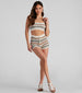 Sun's out. legs out! These crochet-knit shorts are perfect for summer festivals and casual beach days. They feature a high-rise drawstring waist. front tie closure. and a form-fitting silhouette. Complete the look in the matching top.