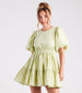 Capture an iconic summer look perfect for day parties in this breezy ruffled cotton skater dress! It features a crew neckline. adorable short puff sleeves. a small back keyhole cutout. a stretchy smocked high waist. a short ruffled and tiered skater skirt with pleated detailing. and a flattering fit and flare silhouette. The lightweight cotton fabric includes a woven skirt lining. Style with strappy sandals.