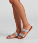 Bring that glam vibe you love to your casual summertime look! These slide-on sandals feature a round toe. a dual banded strap design with braided woven detailing in a trendy metallic hue. and a flat sole. Style with your fave summer dress and sleek hoops.