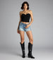 If summer had a uniform. it'd start right here. With a high-rise waist. distressed accents. and a frayed hem. these denim shorts bring all the heat without trying.