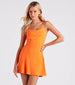 This gorgeous mini dress was made for sunset dates! It features a sleeveless cowl neckline. spaghetti straps. an open back with a cross-back strap design and a low back draped accent. and a mini-length hem with an A-line silhouette. Style this short dress with a dainty necklace and espadrille wedges.