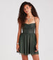 Own the night in this shimmering glitter skater dress - a stunning style for homecoming or a dressy birthday event! The dress features a sleeveless cowl sweetheart neckline. spaghetti straps that lace up along the back. and a flattering short skater silhouette on airy glitter mesh fabric. Complete the look with a gorgeous necklace and earrings set.
