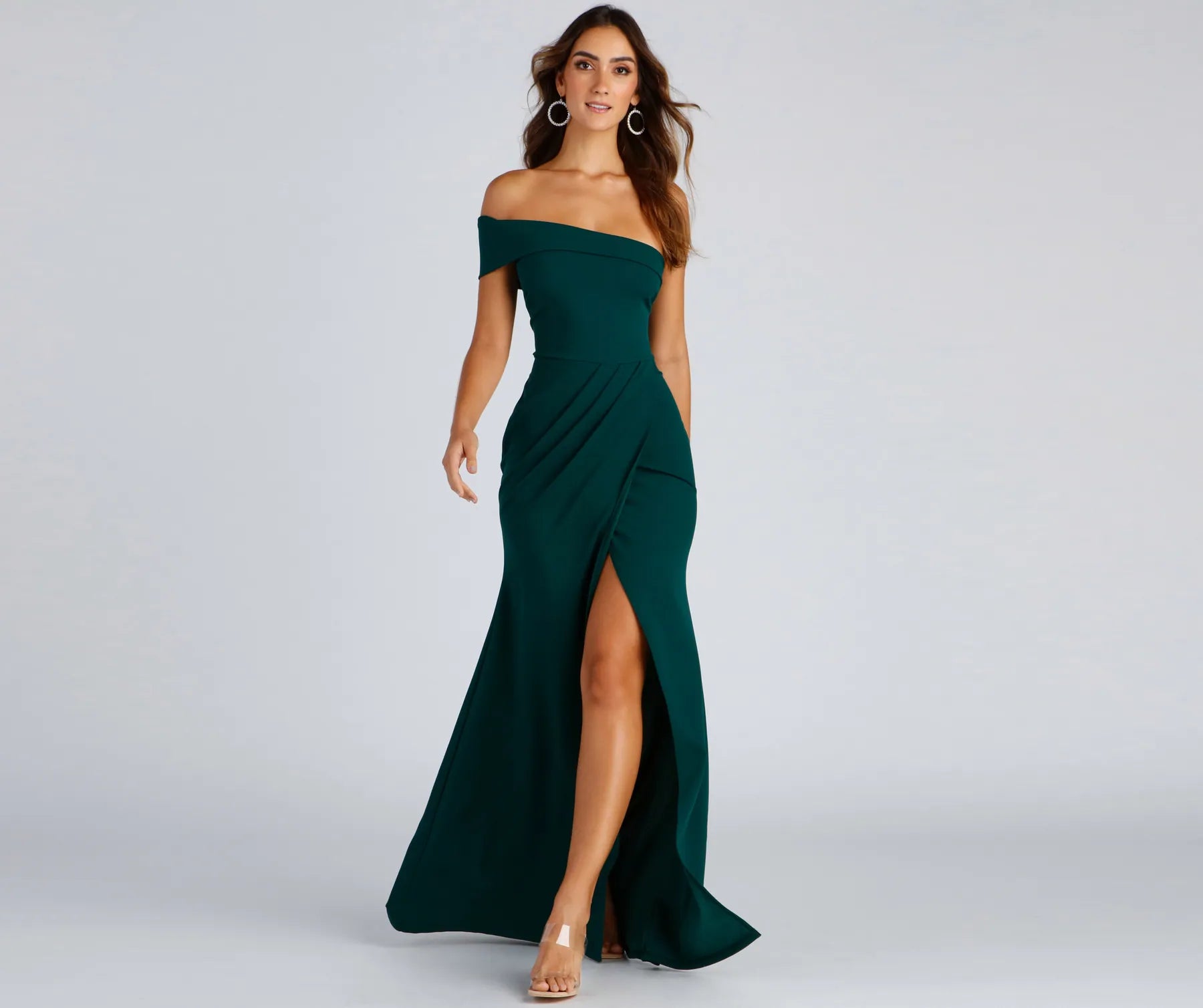 The stunning Susana formal dress will have you radiating elegance! Susana's trendy asymmetric neckline adds a chic touch to her streamlined silhouette. Her wrap skirt reveals a flattering slit that lets you showcase your stylish heels. Make sure you bring a fab clutch to elevate your look.