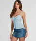 Take on a sweet look in this peplum tank top that everyone will admire! Designed to flatter with a sweetheart neckline. adjustable spaghetti straps for a custom fit. and a stretchy smocked back while the button front and peplum ruffled hem add charming details to this woven fabric. Complete the look in a trendy denim mini skirt for casual plans!