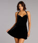 Your night-out go-to just leveled up. This velvet skater dress hugs at the top. flares at the hem. and brings that flirty halter vibe that always feels on trend.