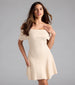 Look sweet on chilly days in this darling sweater mini dress featuring a cute folded. off-the-shoulder neckline and forever flattering skater silhouette.Â
