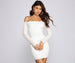 Keep it sweet and stylish in a mini dress that brings pretty details to your outfits. The dress features an off-the-shoulder neckline. long sheer sleeves. scalloped lace throughout. and a mini-length silhouette. Complete look with wedges.