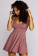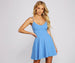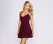 Honey you will look sweet as pie in this cute skater dress! This piece features a V neckline. spaghetti straps. a skater style skirt. and the best part...It has pockets! This dress is comprised of a soft crepe material that offers moderate stretch.