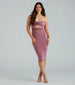 Step out looking sweet and charming in this sleeveless knit dress for a dressy soiree! It features a sweetheart neckline. spaghetti straps. a rosette flower bust inset and waist with sultry cutouts. a flattering bodycon silhouette. and a fitted midi-length hem. Complete the look with fringe earrings.