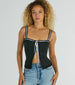 Sweet and innocent. this lace trim bow crop top is the perfect addition to your closet. Made with delicate lace trim and adorned with a charming ribbon bow. this crop top features a square neckline and straps for a stunning look. With a hidden hook eye closure and a center front split. this top is stylish. Complete the look in high-rise trouser pants.