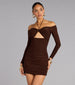 Turn heads in this curve-loving ruched mini dress that's all about sleek confidence. The halter neckline and off-shoulder sleeves give it that effortlessly sultry energy. while the front cutout keeps things daring yet refined. Perfect for date night plans or any moment you want to make unforgettable.