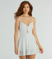 Life's so sweet in this eyelet lace skater romper for spring-to-summer fun! With a flattering V-neckline and delicate twist detail. this romper will elevate your everyday style. Spaghetti straps and a keyhole cutout add a touch of flirty charm. while the skater silhouette gives you a flattering look. Style this romper with sandals and sunnies!