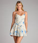 Sugar. spice. and a little lace-up surprise. This skater mini dress brings all the charm with a flattering corset lace-up bodice and floral print—perfect for picnics at the park or strolling the Riviera at noon.