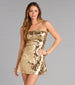When sweet meets show-stopping. This strapless mini dress steals the spotlight with shimmering sequin bow details and a flirty lace-up back that cinches to perfection. It's the perfect mix of playful charm and party confidence.