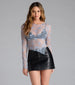 Show off the sweetest allure in this airy sheer floral lace top with long fitted sleeves and an asymmetric hem. Style over a bralette or tank for a trendy look.