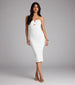 She's sculpted. strapless. and made to serve. This textured midi dress brings the heat with a sweetheart neckline. front cutout. and curve-hugging fit—perfect for date nights. rooftop vibes. or that one party everyone's posting about.