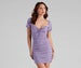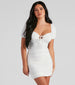 You'll look so sweet in this mini dress for a cute brunch fit. It features adorable short puff sleeves along the sweetheart neck with a cutout bust tie. The side ruched seams accentuate your curves on slinky knit-lined fabric with a moderate stretch. Complete the look in PVC mules.