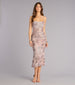 A dress that knows how to flirt back—soft mesh. blooming prints. and a cowl neckline that moves with a little drama. The wrap detail and curve-hugging skirt follow your shape just right. making this your go-to for nights when you want a look that feels effortless yet unforgettable.
