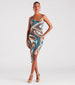Attract all the attention when you step out in this marble print midi dress for dinner and drinks! It features a sleeveless scoop neckline. spaghetti straps. an open strappy back design. a bodycon silhouette. and a flattering side ruched seam and slit along the asymmetrical hem. Complete the look with a fab earrings set and heels.