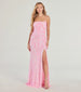 Make a shimmering arrival in the Tabitha sequin formal dress at celebrations and red-carpet events! The floor-length dress is designed in a fitted column silhouette with a high front slit for movement.