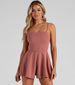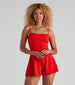 Take this crepe romper on your trip to Capri! It features a sleeveless square neckline. spaghetti straps. a form-fitting bodice. and a flowy hem. Complete the look in dainty butterfly earrings.